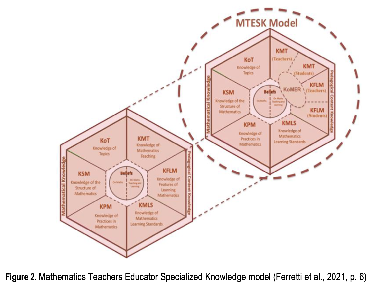 - Ferretti, F., Martignone, F., & Rodríguez-Muñiz, L. J. (2021). Mathematics teachers educator specialized knowledge model. Zetetiké, 29, e021001. https://dx.doi.org/10.20396/zet.v29i00.8661966